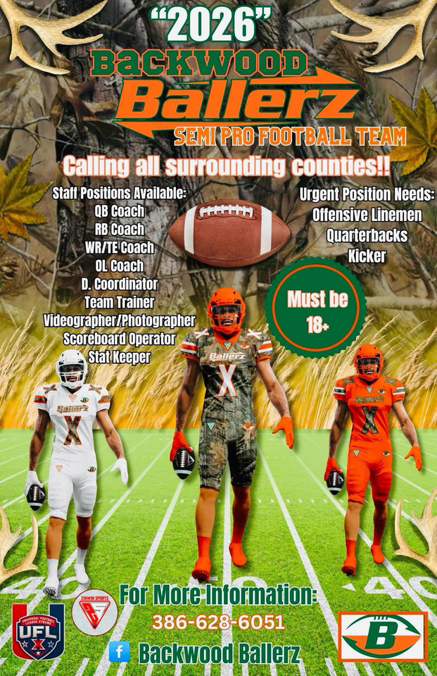 The Backwood Baller’z, based in Lake City, FL, are actively looking to expand their roster and staff ahead of the upcoming 2026 season.
